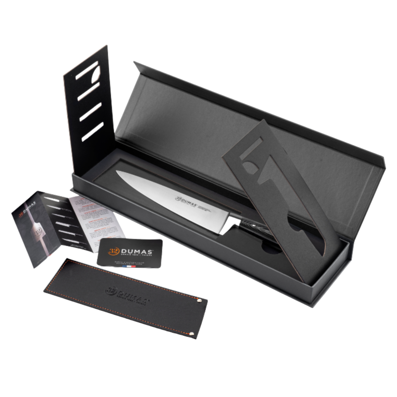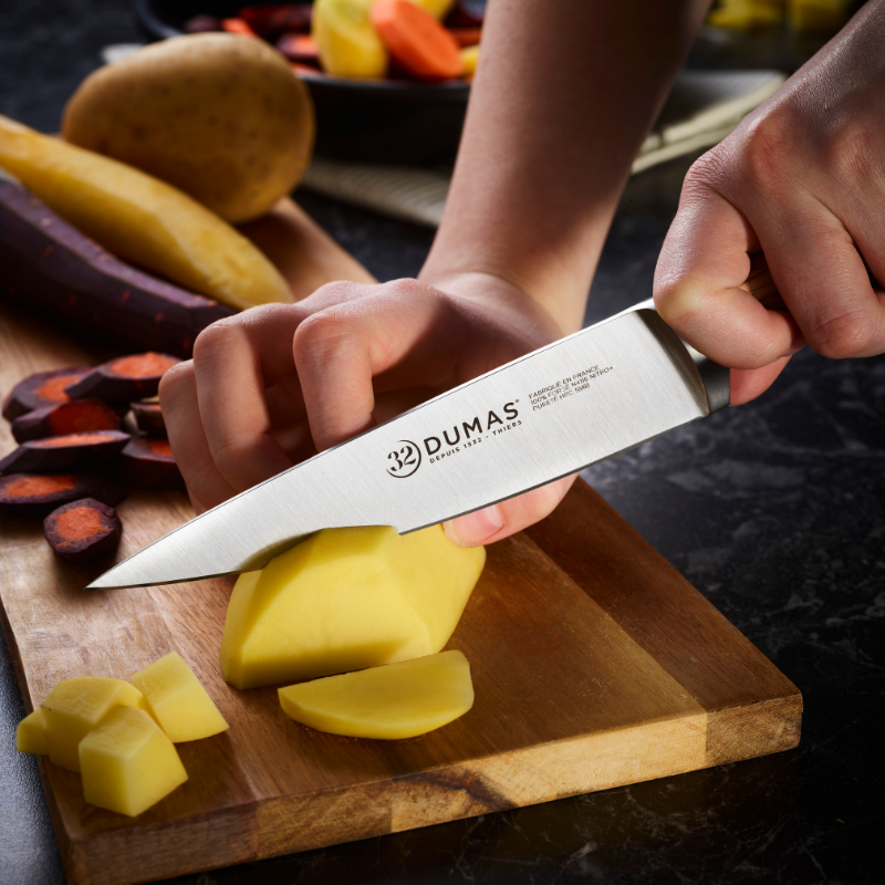 32 Dumas® est la plus ancienne marque de coutellerie française, fondée en 1532 à Thiers, capitale historique du couteau. Alliant tradition artisanale et innovation (acier inox renforcé, collections modernes), 32 Dumas® est aujourd’hui une référence pour les professionnels de la cuisine et incarne l’excellence de la coutellerie thiernoise.