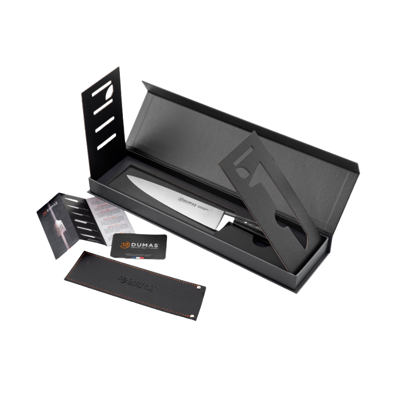 32 Dumas® est la plus ancienne marque de coutellerie française, fondée en 1532 à Thiers, capitale historique du couteau. Alliant tradition artisanale et innovation (acier inox renforcé, collections modernes), 32 Dumas® est aujourd’hui une référence pour les professionnels de la cuisine et incarne l’excellence de la coutellerie thiernoise.