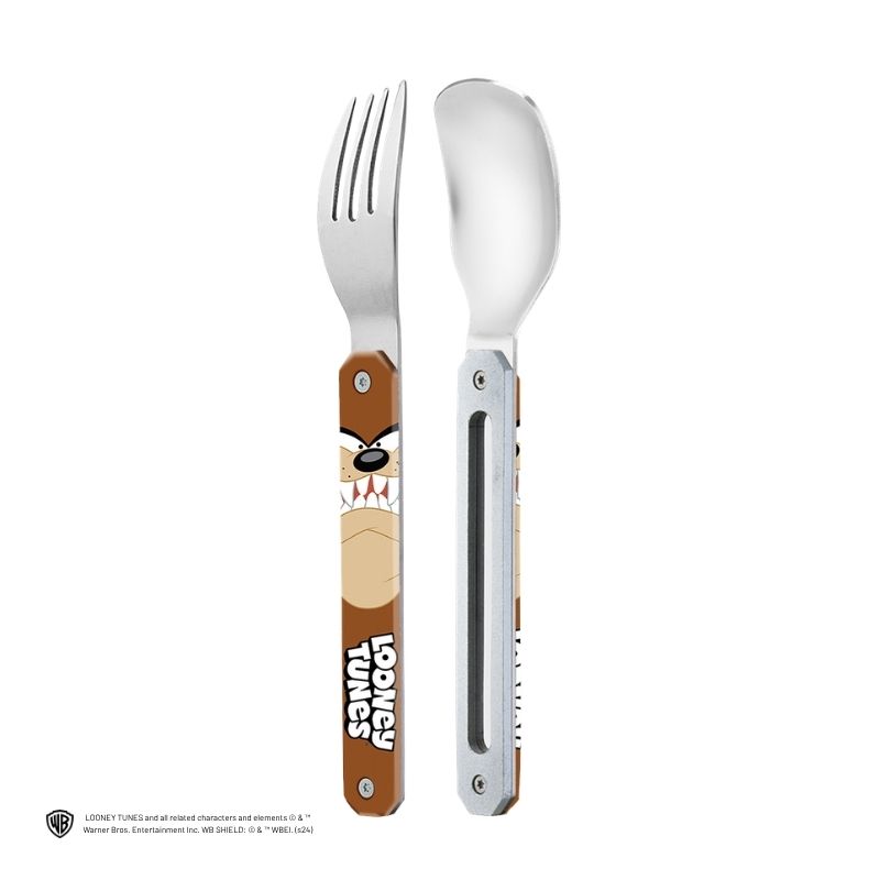 Les couverts Akinod Mini 12:12 Taz allient praticité, compacité et esprit ludique. Inspirés de l’univers iconique des Looney Tunes, ils apportent une touche originale à vos repas nomades. Ce set comprend une cuillère et une fourchette 4 dents, parfaitement adaptées aux pauses déjeuner sur le pouce.