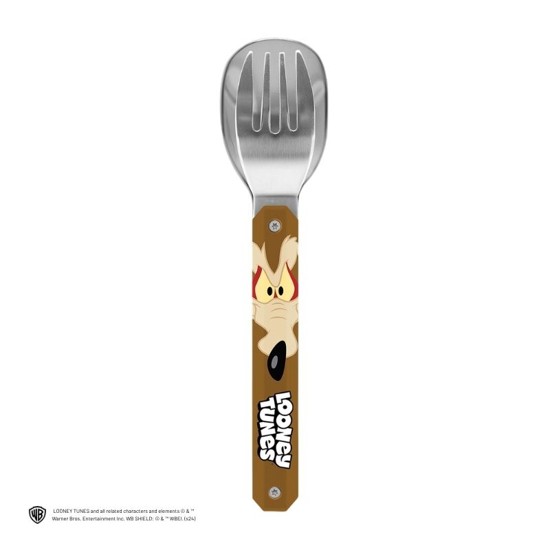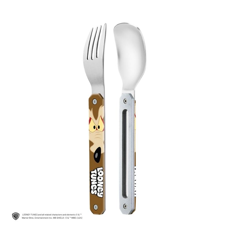 Les couverts Akinod Mini 12:12 Vil Coyote allient praticité, compacité et esprit ludique. Inspirés de l’univers iconique des Looney Tunes, ils apportent une touche originale à vos repas nomades. Ce set comprend une cuillère et une fourchette 4 dents, parfaitement adaptées aux pauses déjeuner sur le pouce.